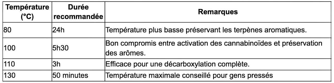 Une chaleur trop basse entraîne une décarboxylation incomplète, tandis qu'une température trop élevée peut dégrader les cannabinoïdes et brûler les terpènes (responsables des arômes et effets synergiques).
